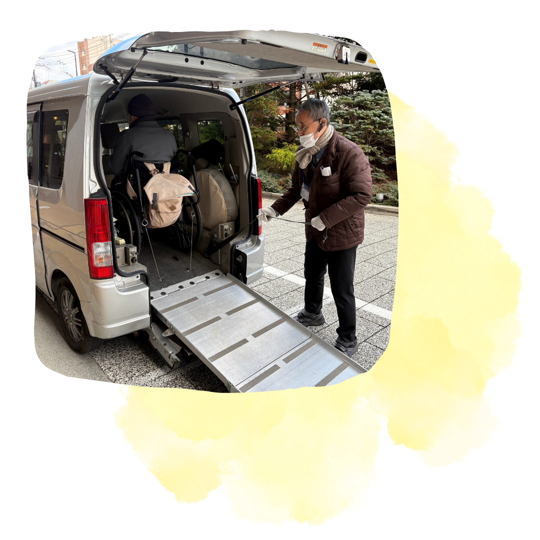 ○移動支援(ガイドヘルプ):屋外での移動が困難な障害者に、外出のための支援を行います。